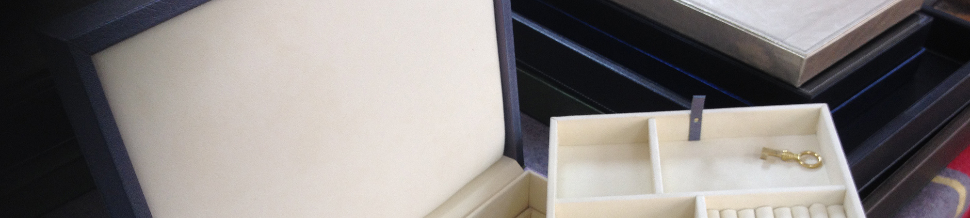La fabrication de boîtes pour meuble cartonnier avec façades cuir, munies de poignées ou boutons, ornées d’un décor doré au style de votre choix.